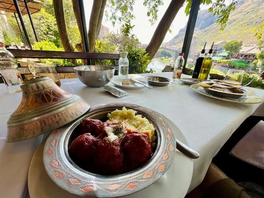 Reservations essential for terraces—use TripAdvisor or WhatsApp. Cash (BAM or EUR) rules; cards rare. Water’s safe; try tap with lemon. Tipping: 10%. Allergies? Ask for “bez mesa” (no meat). Pair with Blagaj wine tours. Eco-note: Many spots source sustainably post-2025 floods.